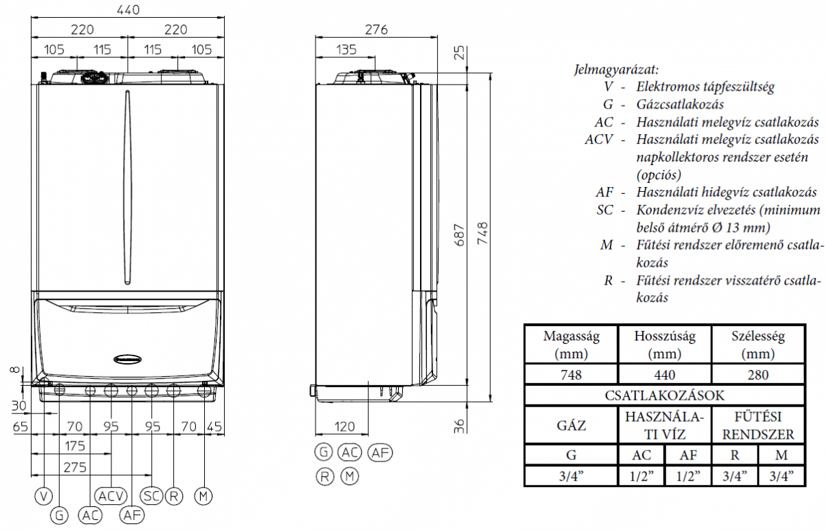• 748 / 440 / 280 Méret (mag/szél/mély)