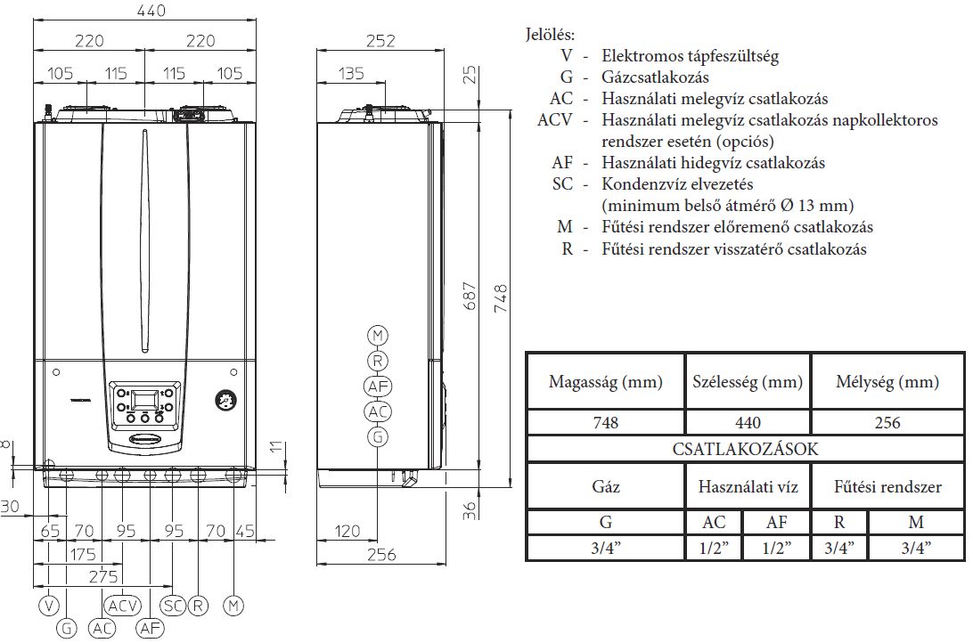 • 748 / 440 / 256 Méret (mag/szél/mély)