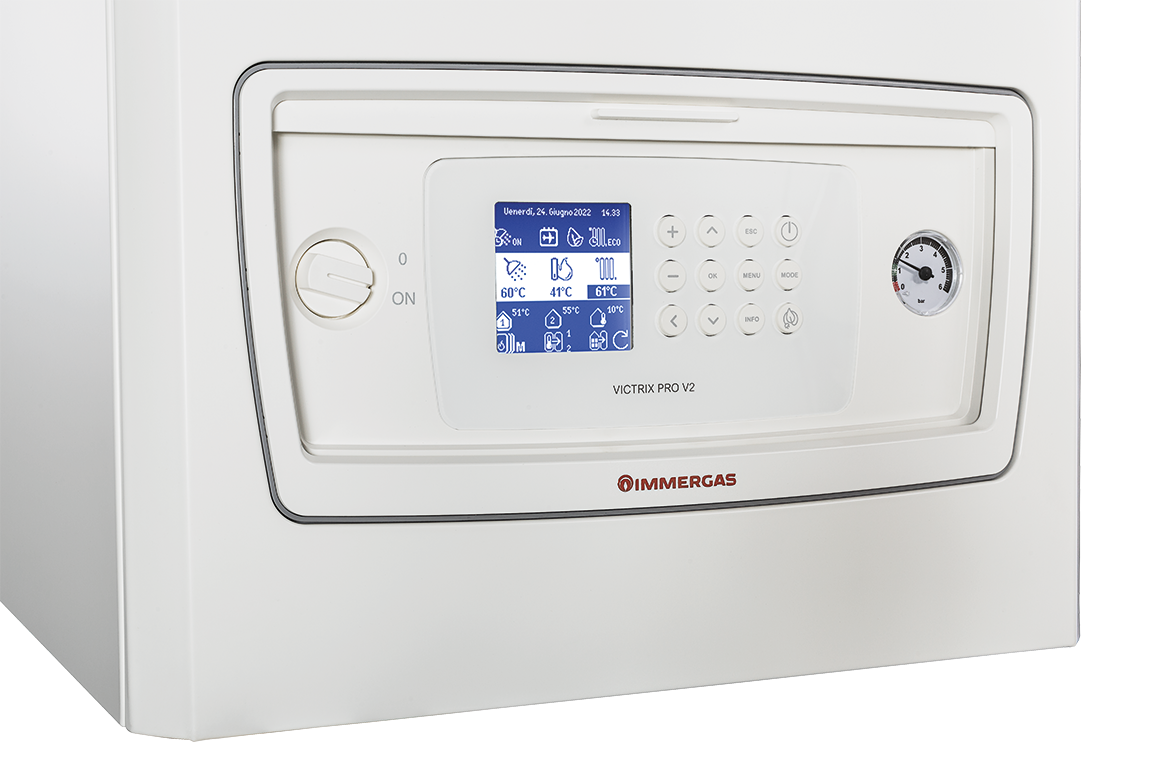 A VICTRIX Pro V2 gázkészülék egy nagy hőteljesítményű, falra szerelhető kondenzációs kazán ami indirekt tároló csatlakoztatásával képes használati melegvizet előállítani. Nagy teljesítménye és kaszkádba kötési lehetősége miatt társasházak, ipari létesítmények ideális megoldása lehet. Az integrált távfelügyelettel ellátott digitális kaszkád és zóna vezérlő csatlakoztatásával és bővítőegységével lehetőség van akár 5 fűtési kör (egy direkt kör és maximum négy keverőszelepes) kialakítására, valamint egy indirekt HMV tároló vezérlésére. A kaszkád szabályozó akár 8 VICTRIX Pro V2 készüléket is képes léptetni folyamatos teljesítmény-szabályozás mellett. A kaszkád szabályozó egységekből akár 3 is összeköthető, így összesen 15 fűtési kör kialakítása lehetséges, valamint 3 HMV tároló vezérlése. Fűtési rendszer kialakításához a készüléket hidraulikai váltón vagy hőcserélőn keresztül kell a rendszerhez csatlakoztatni a kazánkör és a fűtési kör eltérő tömegárama miatt, a kazán védelme érdekében a hőcserélős leválasztás a preferált.